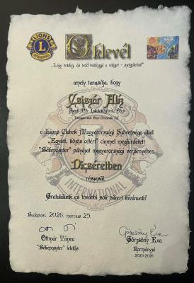 A Pécs-Normandia Lions Club - LIONS Ház is képviseltette magát a Szövetség által meghirdetett Békeposzter versenyen 2026. március 25-én, Csiszár Aliz szép és kifejező alkotásával.